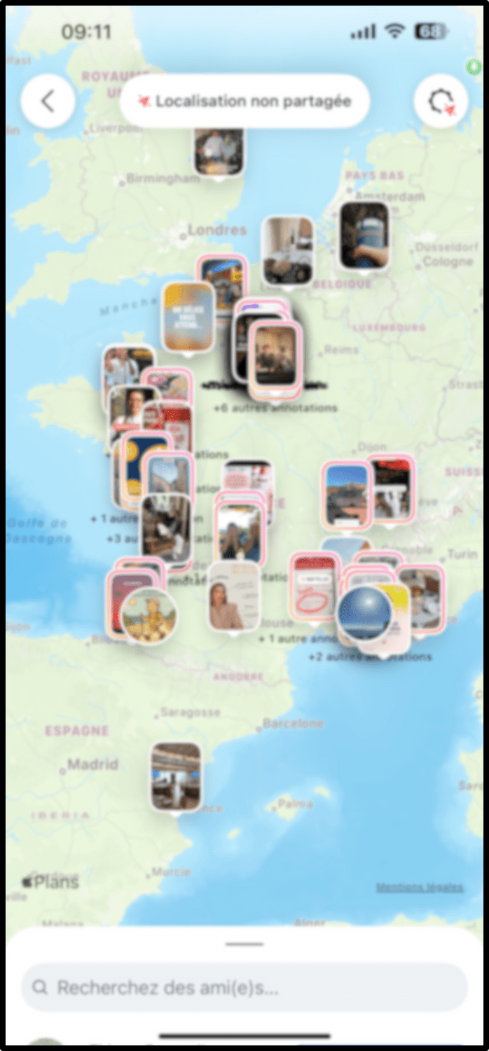 Chaque contenu géolocalisé (photo, vidéo, story) apparaît sur une carte interactive.