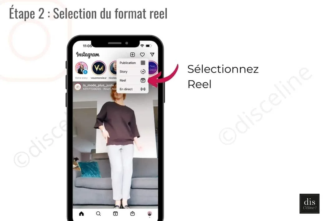Étape 2 : dans la liste en bas de l’écran, sélectionnez la catégorie “Réels”.